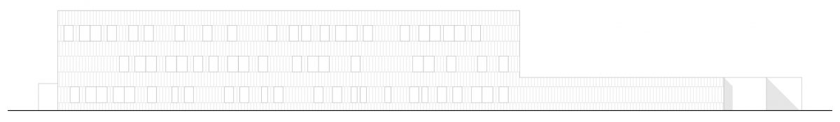 The height is based on the existing building height from the 1970s on the police site. Facing the street, the building has an accentuated and transparent entrance area that is inviting and open to the public. The façade arrangement consists of a rigid layering of parapet and window bands. The irregularly edged bronze-coloured corrugated sheeting is always offset against each other in bands, creating a subtle interplay in the façade and an interesting effect.